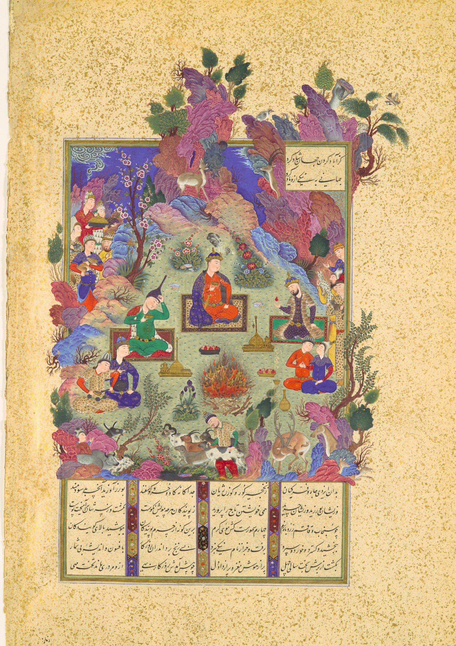 Sous le règne de Hushang, petit-fils de gayumars, un jour, voulant atteindre un dragon tapi dans l’ombre, Hushang lança une pierre qui frappa un rocher et fit jaillir des étincelles. de ce geste naquit le feu, aussitôt célébré lors d’un grand festin. En brûlant, cette bougie ravive ce mythe fondateur.